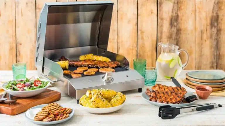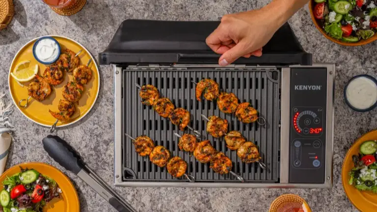 La rejilla de aluminio fundido cuenta con un doble recubrimiento del antiadherente de grado médico más duradero disponible, libre de PFOA, y puede limpiarse fácilmente en el lavavajillas.